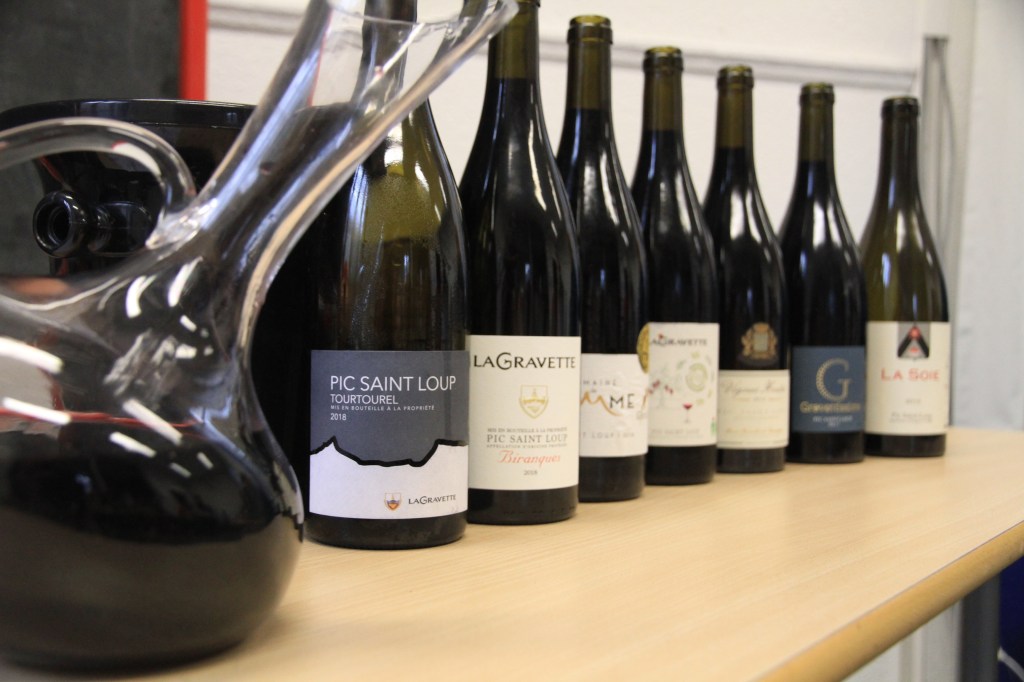 Au programme jeudi dernier : 6 vins de la cave coopérative de La Gravette à Pic Saint-Loup et la cuvée haut-de-gamme du Domaine des Rêves (La Soie) dans le millésime 2018.