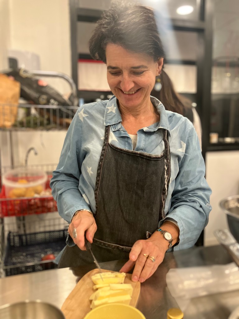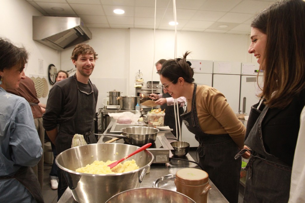 Au menu de ce dîner – dégustation, un repas riche avec une une tourte fourme d’Ambert, poire et porc en entrée, suivie d’un hachis parmentier de bœuf aux pommes de terre et céleri. Plateau de fromages pour rouvrir l’appétit avant une très gourmande tarte choco-caramel…