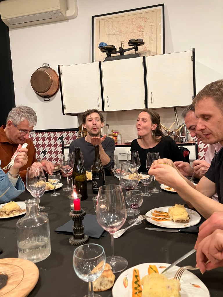 Ce mercredi 22 novembre 2023, les fidèles de ce rendez-vous bisannuel chez Loïc Fromentin, grand patron de La Grande Bouche, se sont retrouvés pour un dîner d’hiver. Encore une régalade, accompagnée de jolis beaujolais. Vivement la prochaine fois !