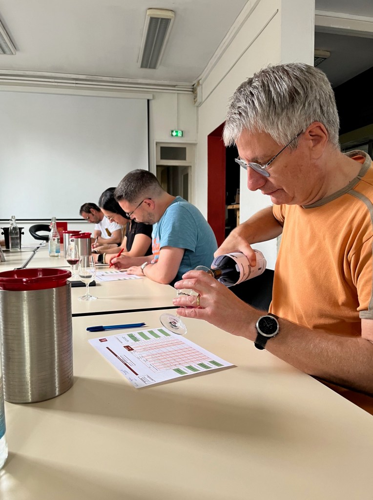 Un moment studieux pour une promo d’un excellent niveau ! Bravo aux dégustatrices et dégustateurs, très concentrés, qui sont parvenus à décerner des récompenses aux trois vins préférés du groupe !