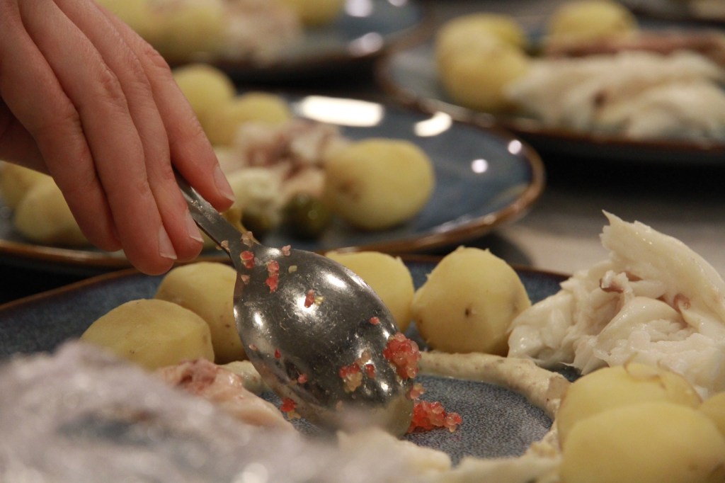 - Plat : Bar en croûte de sel, pommes de terre fumées sauce aux câpres /// Vin : Haute-Côte de Nuits 2023, Bourgogne