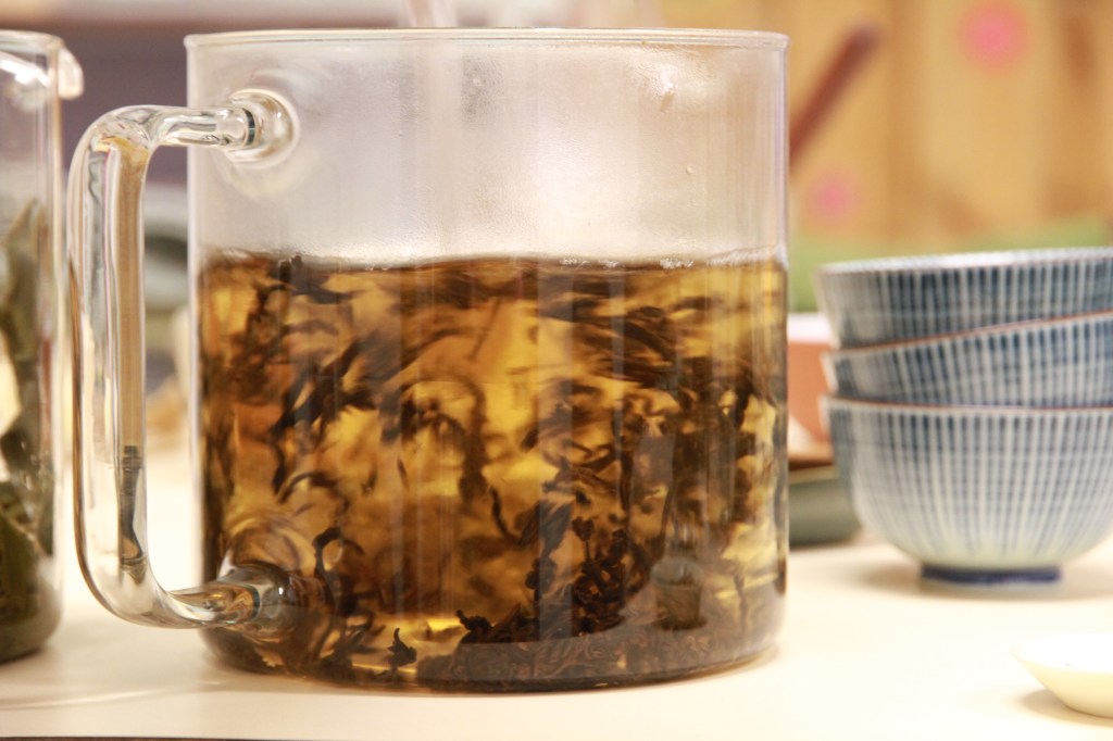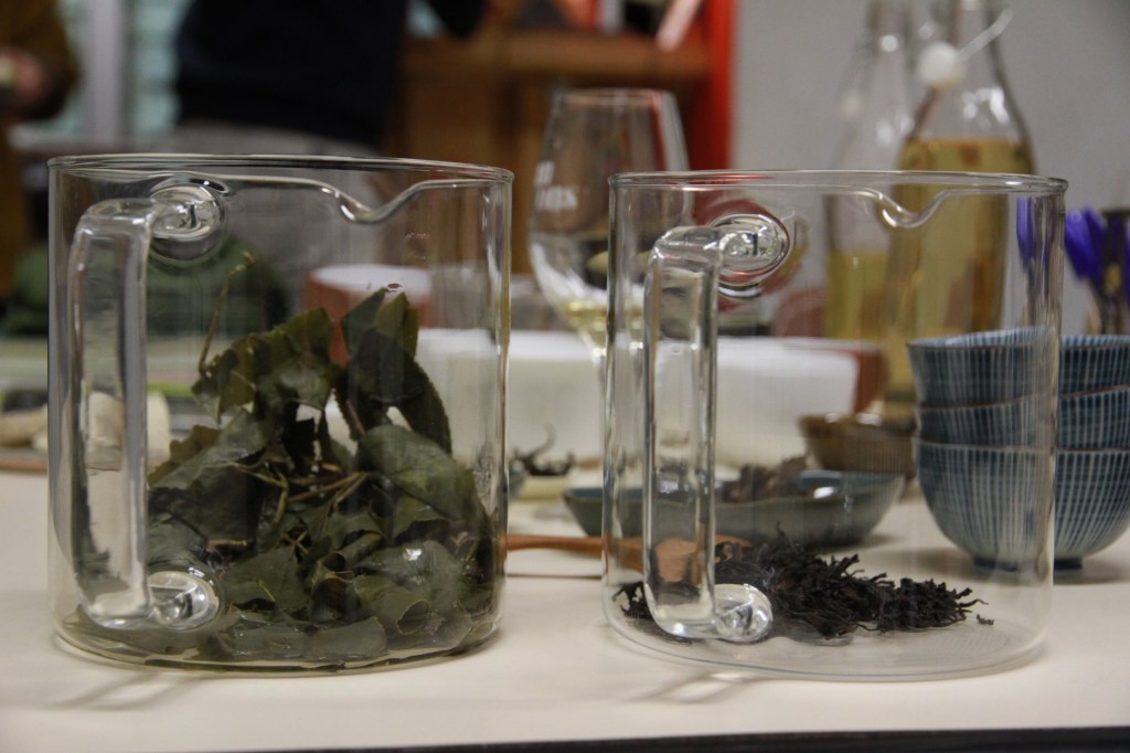 Cet effet saisissant a pu être expérimenté sur cinq accords grâce à la sélection soignée réalisée par Margot. Mais retenons simplement qu’un comté de 24 mois d’affinage se mariera parfaitement avec un thé oolong grand cru (ici le thé des rochers du Mont Wuyi dans la région de Fujian de la maison Ogucha) tandis qu’une mimolette vieille sera revivifiée par un thé rouge sauvage de la même région (Tongmu Guan).