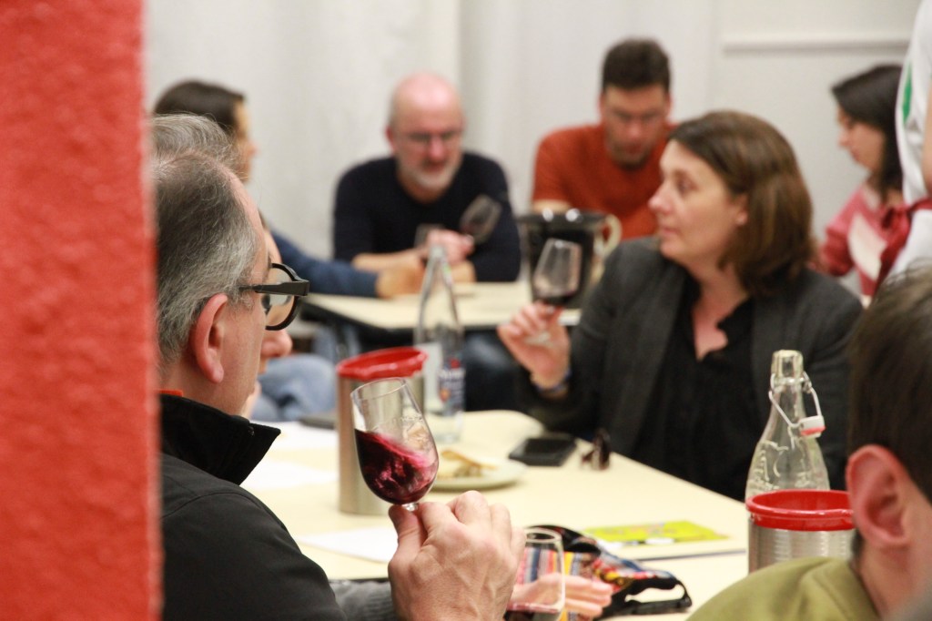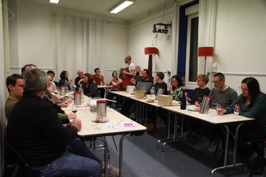 Le thème de la session du mercredi 19 mars était « rouge – hors Bordeaux – 15€ max ». En parallèle, une collecte pour les ami-e-s du Dojo Béglais était réalisée. 110€ ont été collectés et versés au dojo le lundi suivant la soirée.